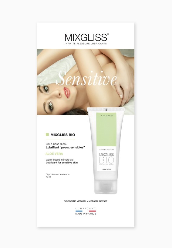 Sobres et épurées, ces cartes présentent au recto les lubrifiants à base d’eau et au verso elles détaillent les bénéfices de ces formulations onctueuses.